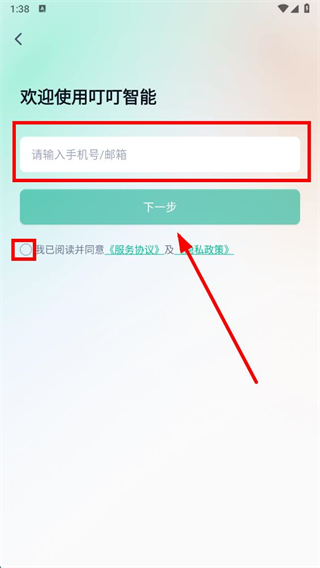 2、在注冊頁面輸入手機號郵箱,勾選同意服務協(xié)議及隱私政策后,點擊下一步。