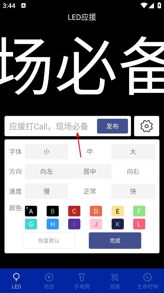 3、在LED應援設置頁面,點擊輸入框,輸入要顯示的文字內容。