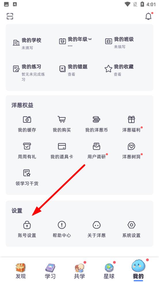 3、進(jìn)入賬號(hào)設(shè)置頁面后,在頁面底部找到退出登錄按鈕,點(diǎn)擊該按鈕,即可完成洋蔥學(xué)園的退出登錄操作。