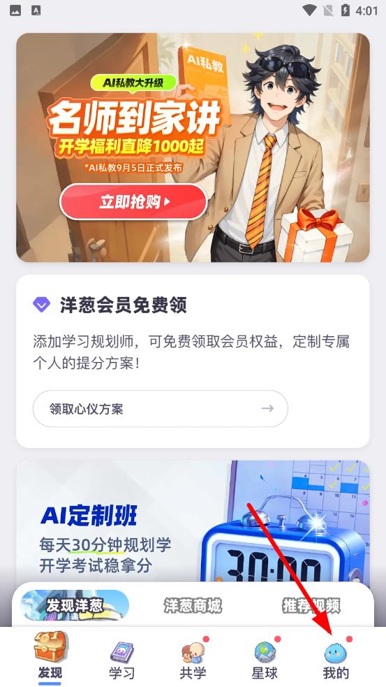 1、打開洋蔥學(xué)園App,在底部導(dǎo)航欄中,點(diǎn)擊最右側(cè)的我的選項(xiàng)。