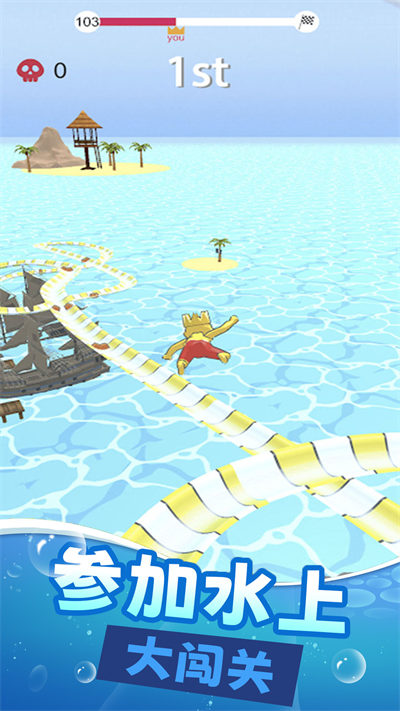1、輕松休閑的游戲玩法,這里有一個(gè)超大的水上樂園滑梯,玩家可以操控角色在這個(gè)進(jìn)行滑梯競(jìng)速;