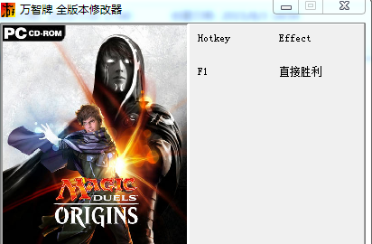 萬(wàn)智牌對(duì)決:起源修改器功能很單一,但是很強(qiáng)大,在游戲中按快捷鍵F1直接獲得游戲勝利(在牌局開(kāi)始并且發(fā)牌后開(kāi)啟本項(xiàng),開(kāi)啟后立刻關(guān)閉,此時(shí)對(duì)手的HP已經(jīng)清零,此時(shí)只需要直接結(jié)束回合即可獲勝)