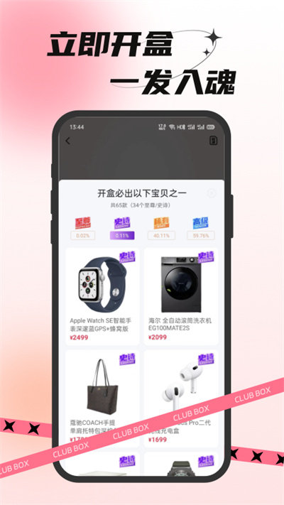 3、玩法種類多樣各種爆款好物等待大家,感受真正的盲盒驚喜體驗(yàn)。