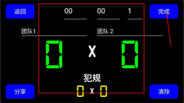 4、設(shè)置完成后點擊完成按鈕,即可保存設(shè)置并返回足球計分界面查看計分情況。