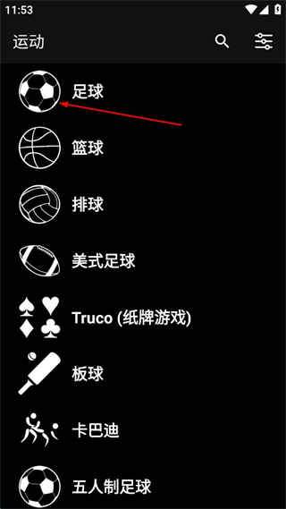 2、在運動選擇界面點擊足球選項,進入足球計分界面。