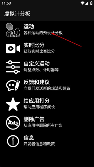 1、打開虛擬計分板軟件,點擊運動選項,進入運動選擇界面。