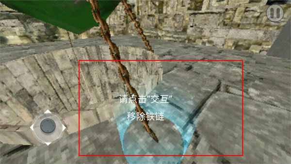 4、在鐵鏈場(chǎng)景中,點(diǎn)擊交互移除鐵鏈,完成該環(huán)節(jié)的解謎操作。