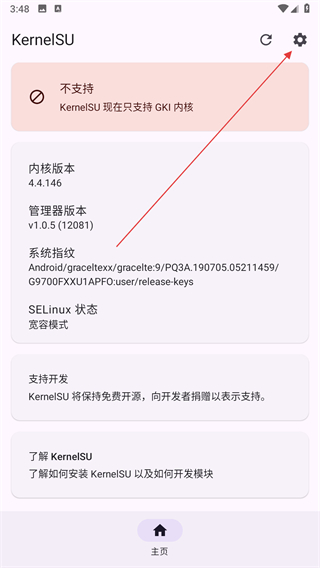 1、打開KernelSU應(yīng)用,點擊右上角的設(shè)置圖標(biāo)。