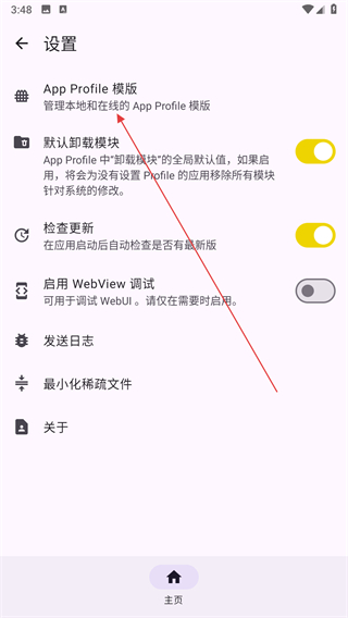2、在設(shè)置頁面,點擊App Profile模版選項。