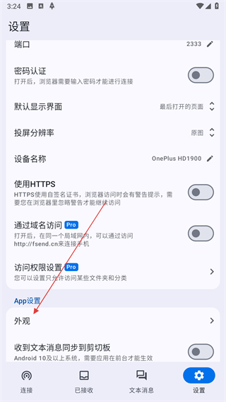2、在設(shè)置頁面中,找到外觀選項(xiàng)并點(diǎn)擊,進(jìn)入外觀相關(guān)的設(shè)置操作界面。