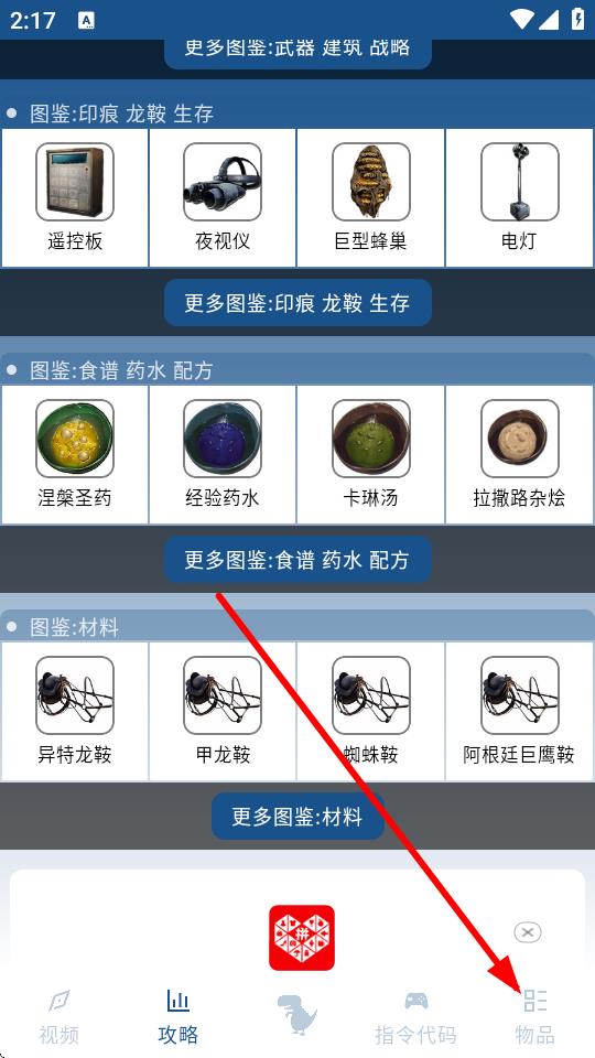 1、打開方舟助手app,點(diǎn)擊底部菜單欄中的物品選項(xiàng)。