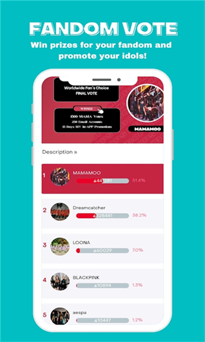 kbops軟件為用戶們提供一個及時更新投票的平臺,在這里粉絲們不僅可以看到自己喜愛的明星藝人的活動動態(tài),還可以與藝人們參與到各種的精彩活動,各種打榜數(shù)據(jù)的投票可以從中快速進(jìn)行,及時的獲取最熱烈的沖榜數(shù)據(jù)活動。