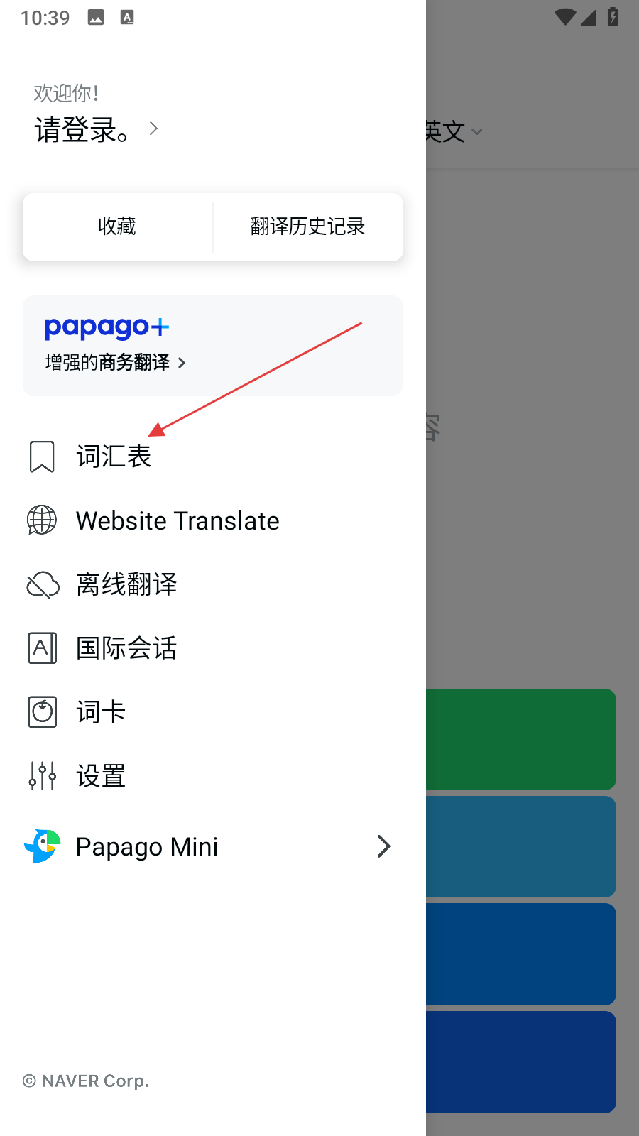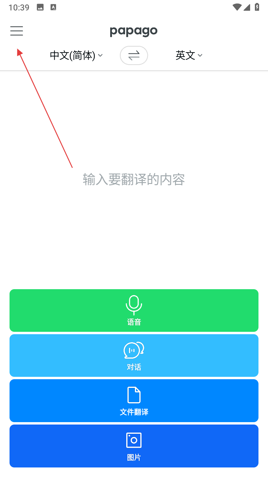 1、打開(kāi)PapagoAPP,點(diǎn)擊頁(yè)面左上角的三條橫線菜單圖標(biāo)。