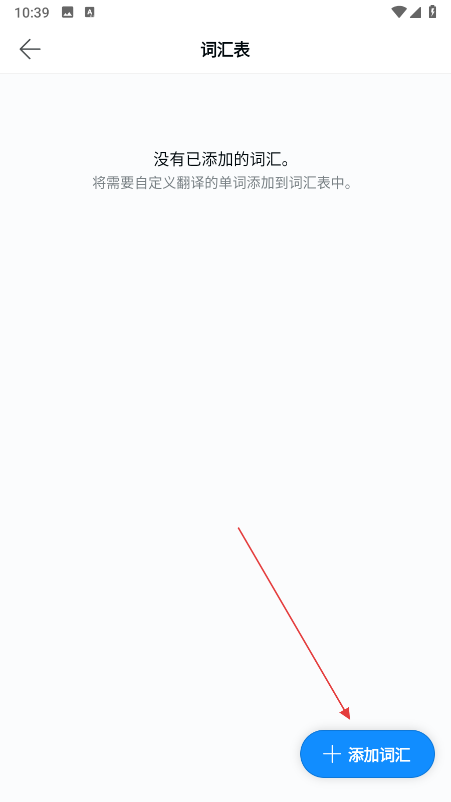 3、進(jìn)入詞匯表頁(yè)面后,點(diǎn)擊右下角的+添加詞匯按鈕。