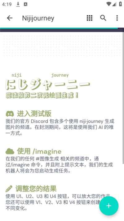Nijijourney官方為大家提供了一個(gè)智能化繪畫的平臺(tái),在面對如今的智能特效繪畫工具的使用上,我們可以從中獲取到超多的免費(fèi)工具使用,大家可以隨時(shí)開啟線上繪畫之旅,為大家提供更多的素材和工具使用非常方便。