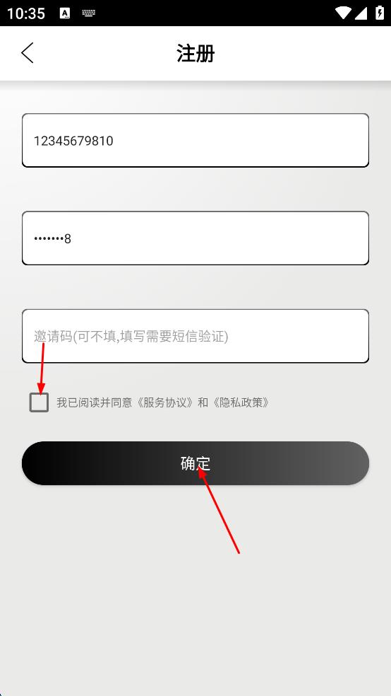 4、勾選我已閱讀并同意服務(wù)協(xié)議和隱私政策,最后點擊“確定”,即可完成注冊。