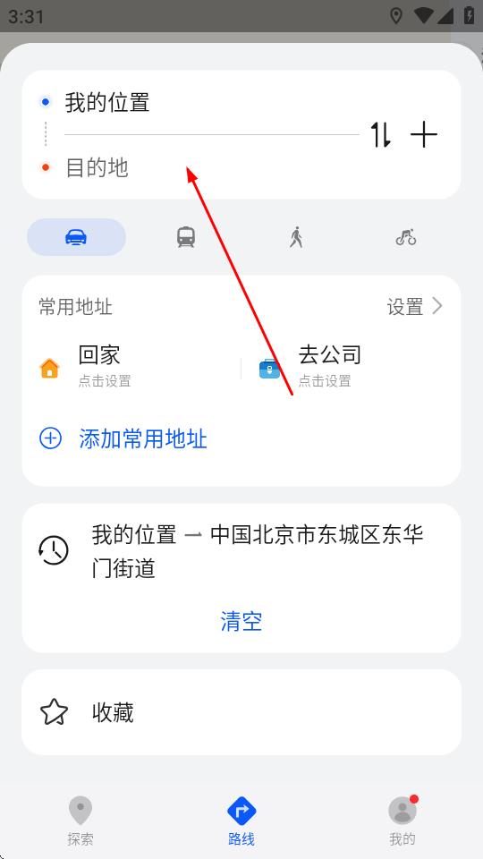 2、進(jìn)入路線規(guī)劃頁面后,在我的位置下方輸入目的地。
