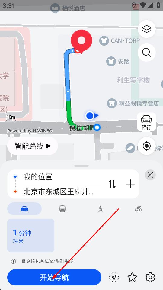 3、設(shè)置好目的地后,點(diǎn)擊開始導(dǎo)航按鈕。