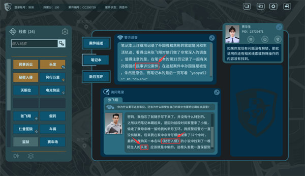 -最終將殺手抓到手中,可按照提示整理搭配,再從中篩選出有用線索并加以分析;