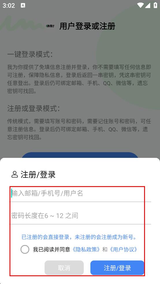 4、點擊“注冊/登錄”按鈕完成注冊登錄操作。