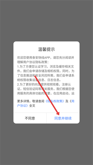 1、打開app,在彈出的頁面中點(diǎn)擊同意并繼續(xù)。