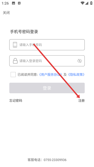 3、在登錄頁面,找到并點(diǎn)擊下方的注冊(cè)選項(xiàng)。