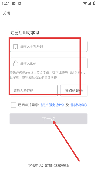 4、在注冊(cè)頁面輸入信息,點(diǎn)擊下一步即可完成登錄。