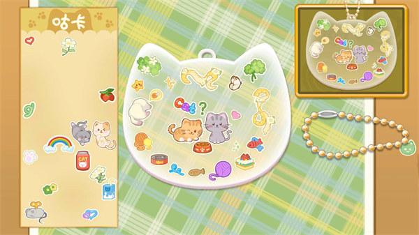 【收集素材】游戲內(nèi)設(shè)置了大量素材庫,有多種造型,圖案和字體,獨創(chuàng)可愛手簾貼。