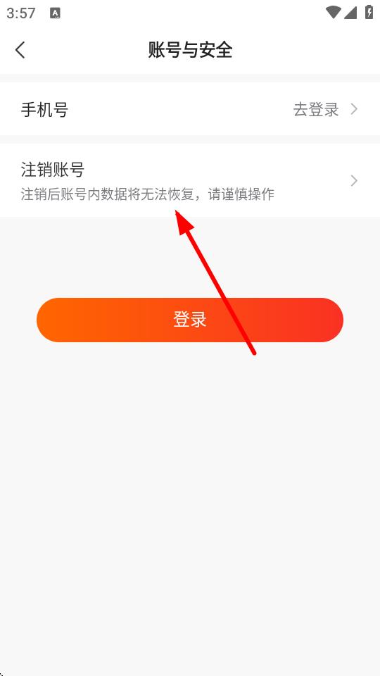 3、進(jìn)入賬號與安全頁面后,點(diǎn)擊注銷賬號選項,該選項下方提示注銷后賬號內(nèi)數(shù)據(jù)將無法恢復(fù),請謹(jǐn)慎操作。
