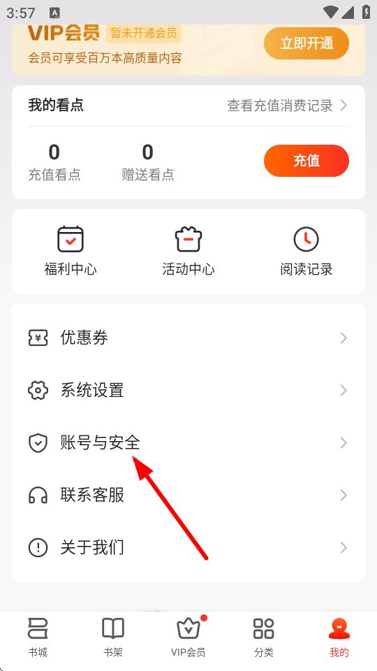 2、在我的頁面中,找到并點(diǎn)擊賬號與安全選項。