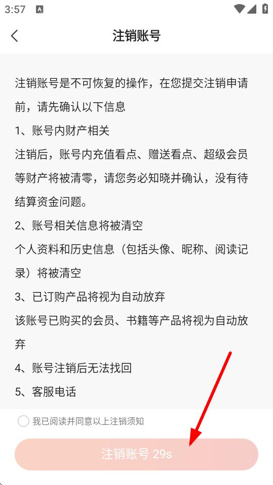 4、在注銷賬號頁面,仔細(xì)閱讀注銷須知,包括賬號內(nèi)財產(chǎn)、信息清空等內(nèi)容,確認(rèn)后點(diǎn)擊注銷賬號按鈕完成操作。