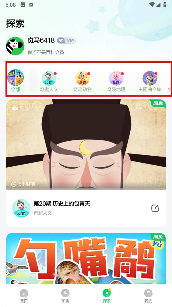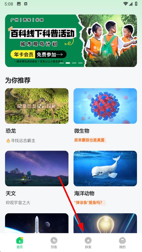 2、在探索界面中能看到不同分類,點擊相應(yīng)分類即可瀏覽該分類下的科普內(nèi)容。