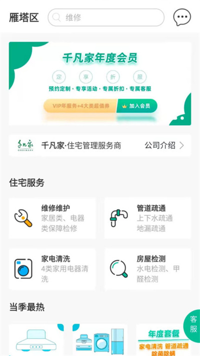 千凡家軟件是一款管理家庭住宅的軟件,可以直接在軟件上面進行托管自己房子進行租賃,需要找房子的用戶可以在軟件上面進行找到房東進行溝通,需要維修家具的用戶也可以在這里找到維修人員,享受非常便利的生活服務(wù)。