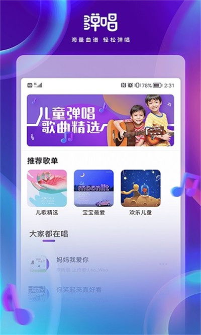3、還有很多兒童歌曲,對(duì)于家里有小朋友的用戶來說非常適合練習(xí)。