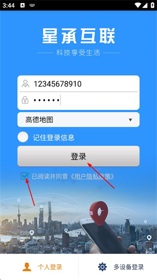 4、勾選已閱讀并同意用戶隱私政策,點(diǎn)擊登錄按鈕。