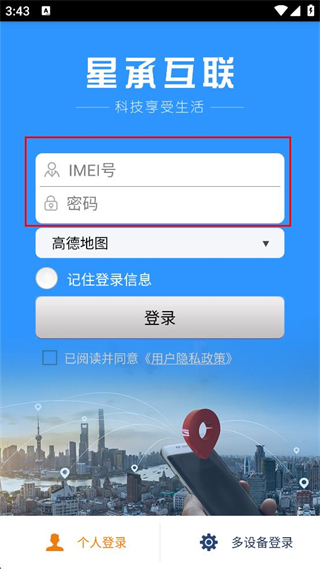 1、點(diǎn)擊個(gè)人登錄,切換至IMEI號(hào)登錄界面。