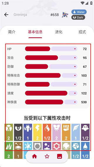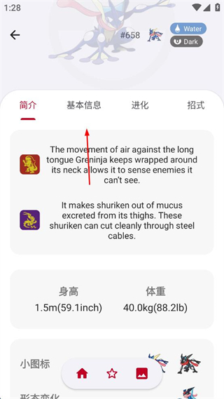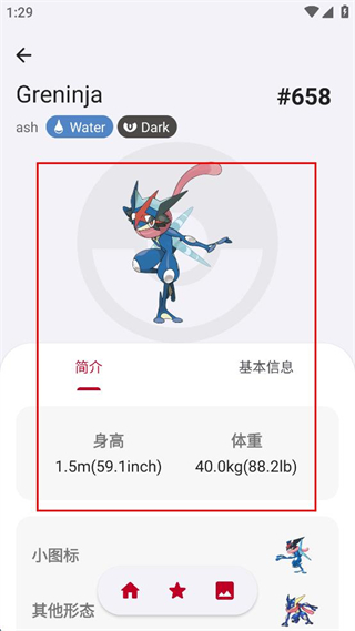 4、還可查看甲賀忍蛙的其他形態(tài)信息,包括身高、體重等數(shù)據(jù)。