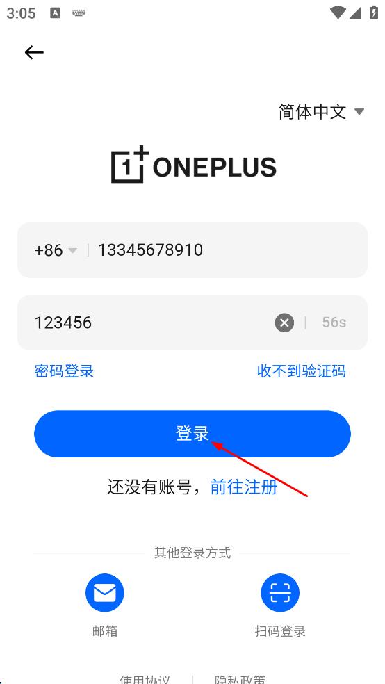 3、在登錄頁面輸入手機號,獲取并輸入6位驗證碼。