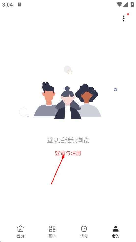 2、進入我的頁面后,點擊登錄與注冊。
