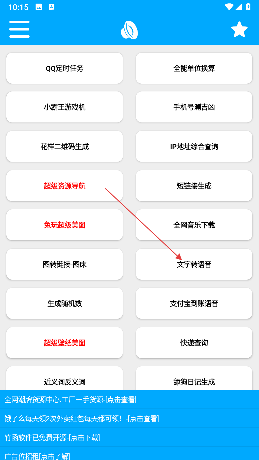 1、打開竹函應(yīng)用,在功能列表中找到文字轉(zhuǎn)語音選項(xiàng)并點(diǎn)擊,進(jìn)入文字轉(zhuǎn)語音界面。