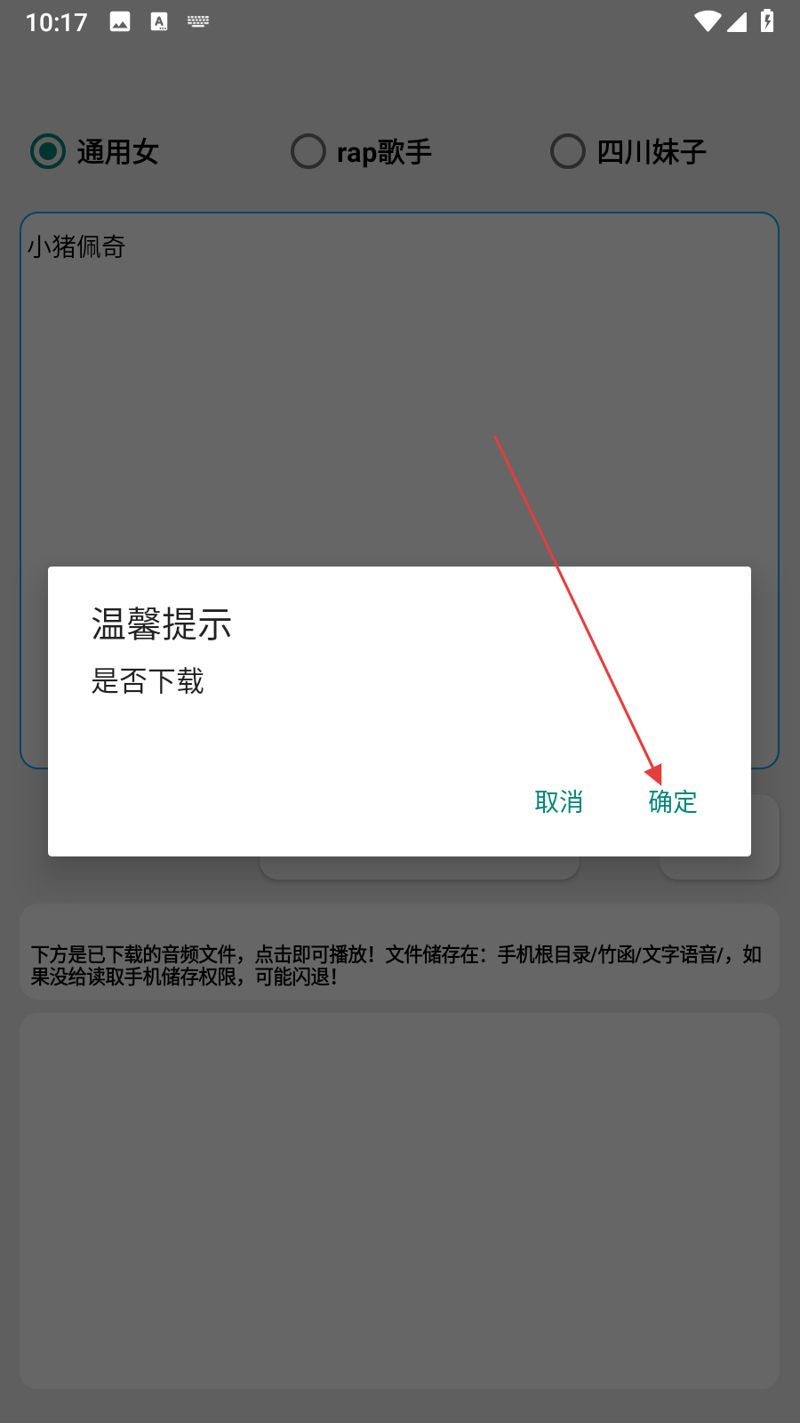 3、在彈出的是否下載提示框中點(diǎn)擊確定,完成音頻下載。