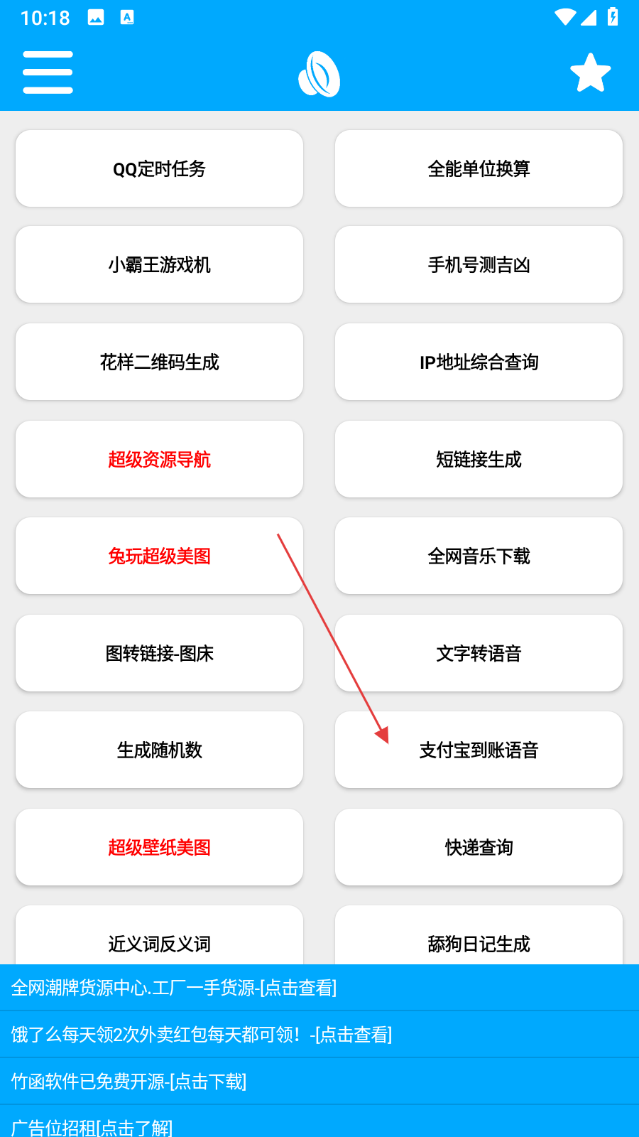 1、打開竹函應(yīng)用,在功能列表中找到支付寶到賬語音選項(xiàng)并點(diǎn)擊,進(jìn)入支付寶到賬語音生成界面。