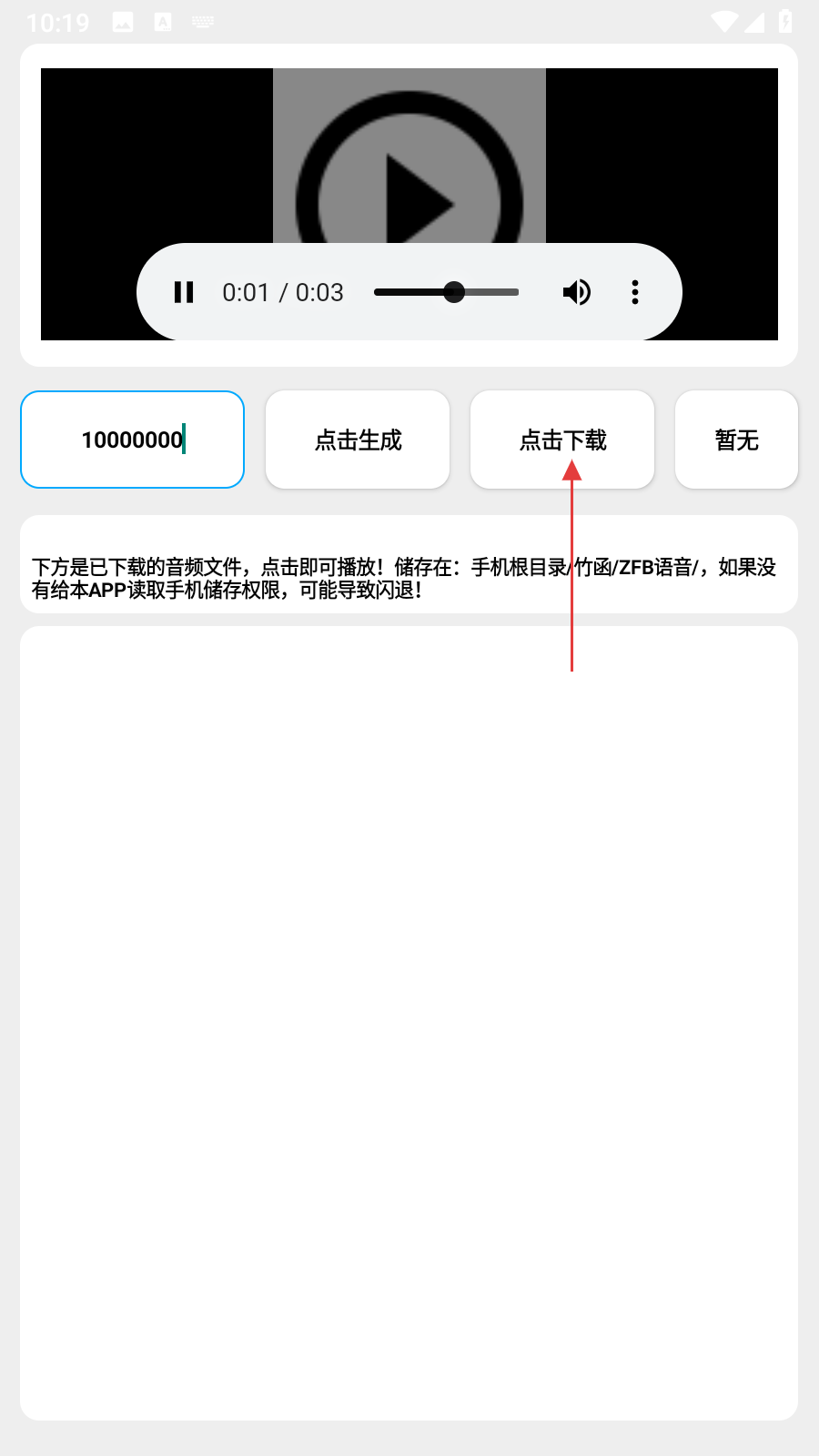 3、生成對應(yīng)的支付寶到賬語音,點(diǎn)擊即可播放,若需保存音頻,點(diǎn)擊點(diǎn)擊下載按鈕。