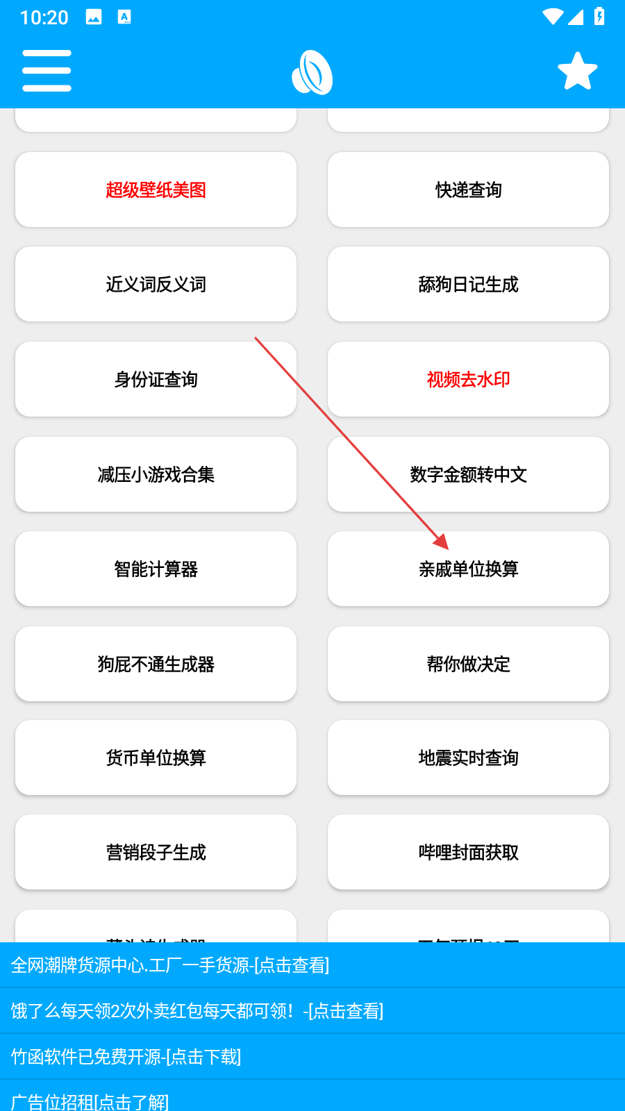 1、打開竹函應(yīng)用,在功能列表中找到親戚單位換算選項(xiàng)并點(diǎn)擊,進(jìn)入親戚計(jì)算器界面。