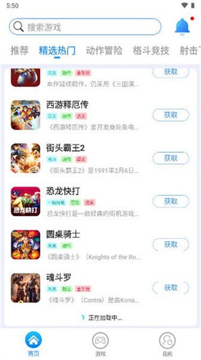 2、可以找到各類經(jīng)典的街機游戲,如《魂斗羅》等,還有最新的熱門游戲。
