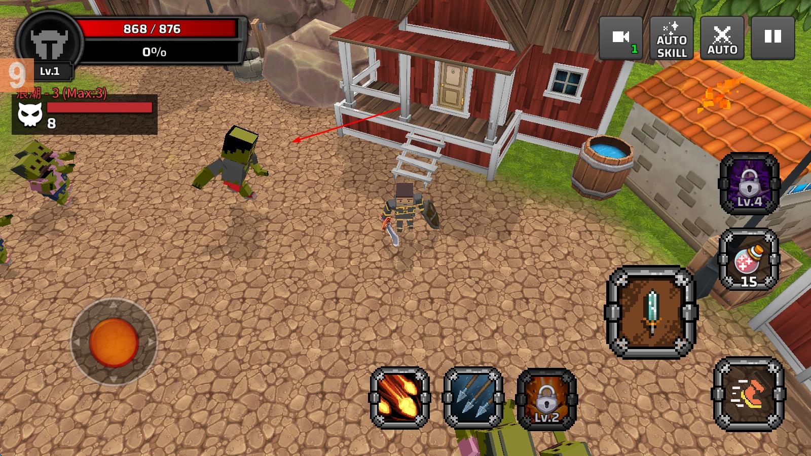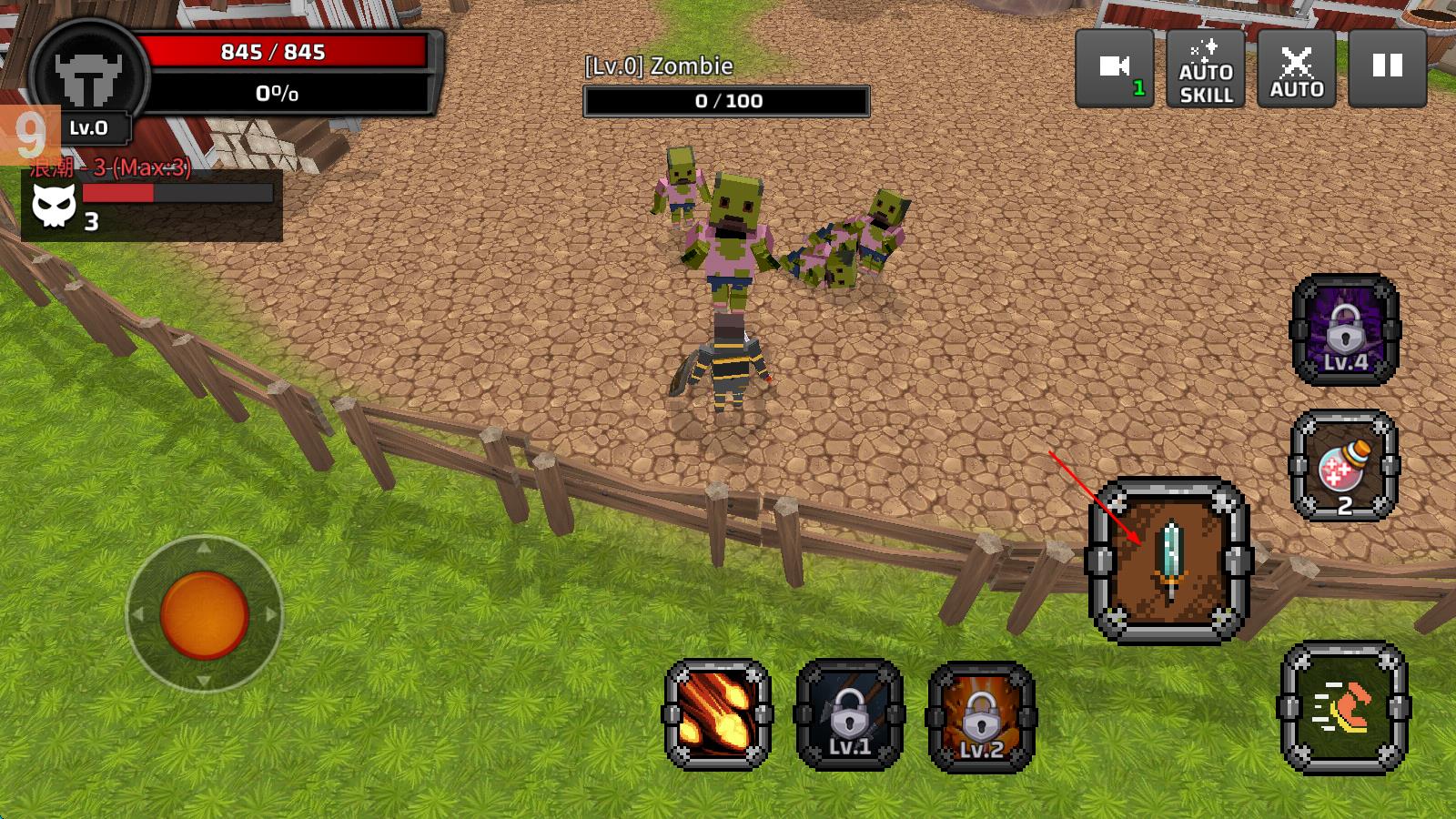 2、進(jìn)入戰(zhàn)斗場(chǎng)景后,點(diǎn)擊右側(cè)武器圖標(biāo),角色將切換對(duì)應(yīng)武器,利用虛擬搖桿控制移動(dòng),靠近敵人并自動(dòng)攻擊,合理釋放技能應(yīng)對(duì)僵尸 。