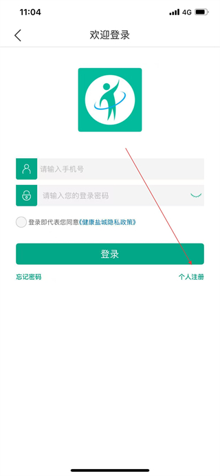 3、在登錄頁面點(diǎn)擊個人注冊,進(jìn)入注冊信息填寫頁面。