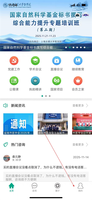 1、打開健康鹽城APP,點(diǎn)擊底部我的,進(jìn)入個人頁面。