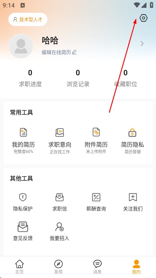 1、打開化工英才網(wǎng)APP,點擊底部導航欄中的我的。