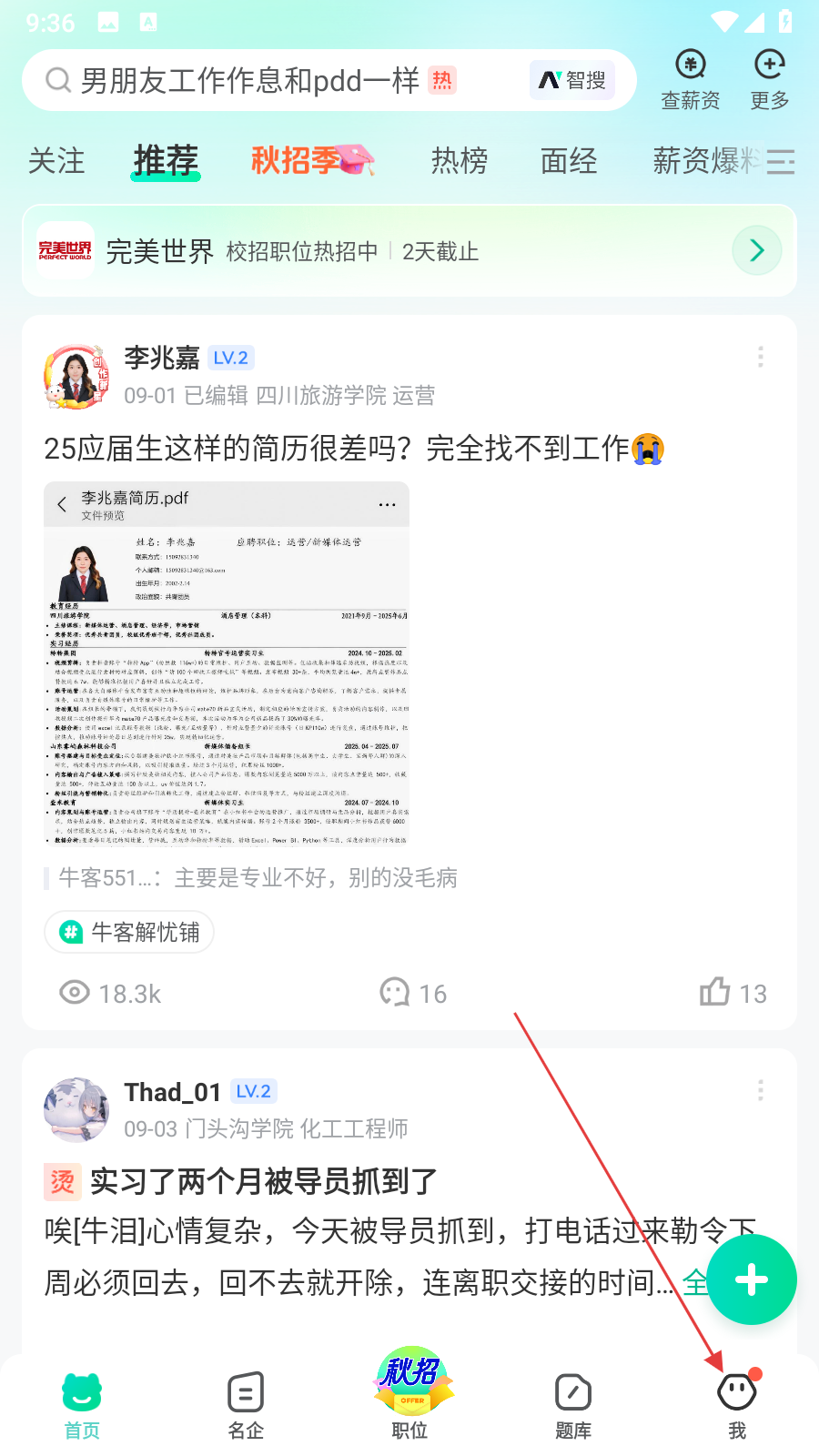 1、打開牛客APP,點(diǎn)擊頁面右下角我,進(jìn)入個人中心頁面。